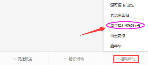 2.点击问道公众号下方“ 福利活动 ”,选择“ 周年福利领骑行卡 ”;