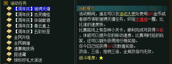 (PS:每次参加活动都会消耗100金/银币,玩家可以在领取任务前选择切换金币跟银币。)