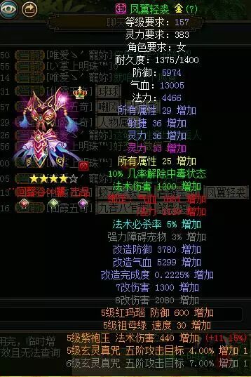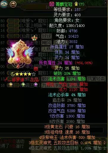 仙霞五奇:第四位就是我啦,一位女法火,因为道行最菜,输出最菜,装备最菜,宝宝最菜。所以外号:菜菜火。