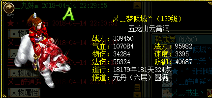 九妹:属性还是可以哒,下面来介绍下你的队友,给我认识人吧。 梦倾城:队伍的法金,是我们队伍的开心果,日常任务都是他在清。