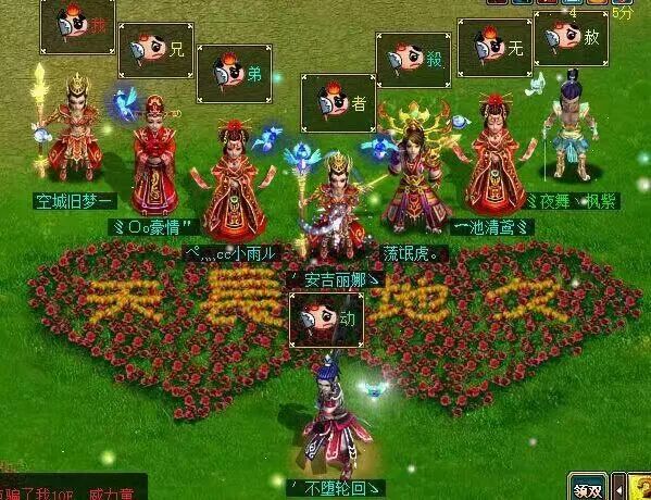 刚开始玩这个79的时候,因为以前没怎么认识游戏里面的朋友,所以自己一个人玩着,最后慢慢认识了几个一起玩79的人。有一天,我无事在天墉城闲逛,看见有人在谈论西安。我一看,还是个高等级的号,于是我就问他是不是西安的,我是陕西。他说他是榆林的。然后我们就加了好友,加了QQ。在然后,他拉我进他的QQ群,里面好多华山的,在群里,我认识了娜娜,一个东北的姑娘。最开始她的游戏名字和她人一样,爺依然霸气,120多级的木男。最后可能觉得这个名字太过于霸气,而且号也不行,就换了一个139的木女,名字是安吉丽娜。在群里和她聊的熟了,我就成了她的哥哥,虽然她比我大。她还有两个关系比较好的好友,加我一起,我们三个成了她大哥二哥三哥,我排行老二,这就是我的家族的最初样子。