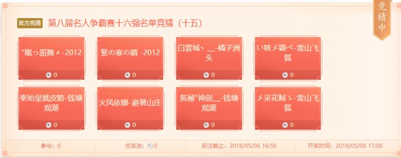 赛事竞猜丨第八届名人争霸赛开战,谁能过关斩将晋级十六强?