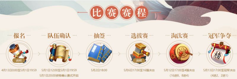 1. 淘汰赛采用三局两胜的淘汰制度,淘汰赛赛制为16进8、8进4 。 2. 若17:10分仍未进入比赛场地的玩家,不可再进入战场。 3. 正式战斗开始后,按照对战列表,进行战斗,在20点之前决出8强,然后在23点之前决出4强。 4. 如果某个队伍轮空,则直接晋级。 5. 每场比赛时间为60分钟,每个晋级阶段,失败的队伍将会被传送出比赛场地。 如在60分钟到达时仍未分出胜负的队伍,则战斗中对对手造成总伤害高的队伍取得胜利,胜利的队伍进入到下一轮比拼。 如全部队伍都在60分钟内战斗结束,则在所有队伍决出胜负后的5分钟后开启第二轮战斗。