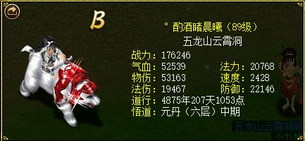 记者:酌酒睹晨曦,89级玩家,角色,女金,道榜第三。