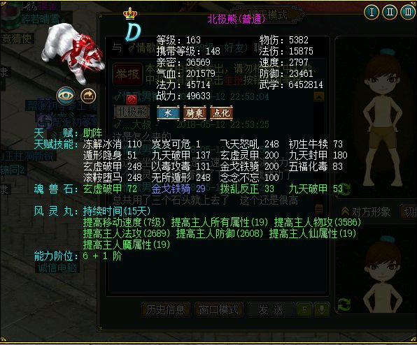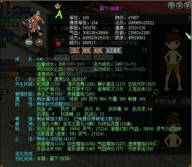 下面就是道友的属性,装备,宝宝及合影,共大家欣赏: