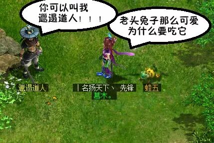 玩家:【2018】李太白。 玩家:【2018】李太白。 往期章节 (一) (二) (三) (四) (五) (六) (七) (八) (九) (十) (十一) (十二) (十三) (十四) (十五) (十六) (十七) (十八) (十九) (二十) (二十一) (二十二) 王老板走后,秋火上前一脚把正在写歌谱的土豪在床上踢了下来。 “啊,好痛,谁踢的俺...”迷迷糊糊从地上爬起来,土豪看着白金秋火两人都用一种很严肃的眼神看着自己,土豪认定,一定是出了什么事,不然火哥也不会把他踹到地上... “金哥火哥,到底发生什么事了,你俩不要这样看着俺好不好...俺不经看的。”土豪委屈的对两人说道。 本来很压抑的气氛,让土豪一句话缓解了不少,有时候就是这样,人太过于聪明不一定会得到心理上的放松,可如果在你生活中有一个像土豪这样憨憨的朋友,我想也是一种幸运吧,其实土豪也并非是真傻! “你啊土豪,嗨,真是拿你没办法。”白金无奈的摇了摇头。 “别啊金哥......”土豪后面的话还没说出,就被秋火打断了。 “胖子,慕木失踪了,你快回去准备一下,我们马上就出发揽仙镇外。”秋火对土豪说道。 “啊,慕木嫂子失踪了,俺知道了,等俺五分钟回去拿武器。”说完土豪就小跑的出了白金居所。 卧龙坡 慕木和蛙五来到卧龙坡后,没走多远就碰到了一只兔子!欣喜的慕木正要准备去抓兔子,不料突然在草丛爬出来数十条蛇! 从小慕木就对蛇很是恐惧,一看到蛇就全身发软,头晕无力......蛙五这边更是夸张,在原地跳了起来霹雳舞,不过那是蛙五在打哆嗦...... 蛇越来越近,慕木和蛙五却像没有了知觉,一动不动的看着蛇往自己这边逼近。 就在这时,从远处突然跑过来一位老人,手里拿着木棍,过来二话不说就是打蛇!不一会,那些蛇都逃跑掉了,老人也走到慕木身边说道:“小姑娘你没事吧,能走就跟着我走吧。”说完后,老人也不做停留,往西南方向走去。 慕木和蛙五对视了一眼,突然慕木从地上爬起来喊道:“老头!等等我...” 在前面走着的老人满脸黑线,这丫头太不礼貌了!两人一蛙就这样走啊走,突然前面的老人停下了脚步,慕木蛙五也随之停了下来。 只见前面老人抡起木棍就朝草丛打去...... “哈哈,今晚又可以开荤了。”说着老人就伸手往草丛摸去,来回摸了两下,就拿出来了一只小白兔!只不过被老人打晕了... 老人回头笑嘻嘻的看着慕木说道:“你这丫头运气不错,晚上就让本道人给你煮锅兔子肉!”说着老人嘴角还溜了一丝丝的口水...... “兔...兔子...肉...”慕木看到老人手中的兔子,又看到老人嘴角上的口水,确认老人没有和她开玩笑,是真的要吃兔子肉... “老头这个兔子那么可爱,你为什么非要吃它呢。”慕木上前对老人说道。