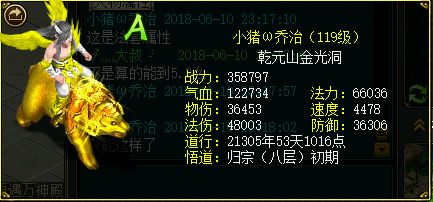 记者:法伤离第一也是分分钟的事情,道友站在第一的感觉不错吧? 小猪ω乔治:高处不胜寒,不过说实话,119玩法不是个明智的的选择,我就是靠法宝打伤害的。