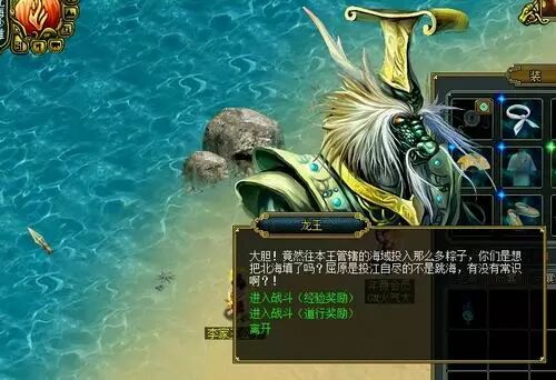 2、将糯米和大粽叶拿到活动大使处可以制作出秘制粽子,若提交商城道具将有几率做出极品秘制粽子或者奇怪的粽子。每种粽子都可以直接食用获得人物经验、道行奖励或者宠物经验、武学奖励;也可以至北海沙滩处,将粽子投入到海中,有几率触发虾兵蟹将战斗,投入“极品秘制粽子”和“奇怪的粽子”还有一定概率触发龙王,若战胜龙王则可获得丰厚奖励,且队长必定可获得商城道具奖励;