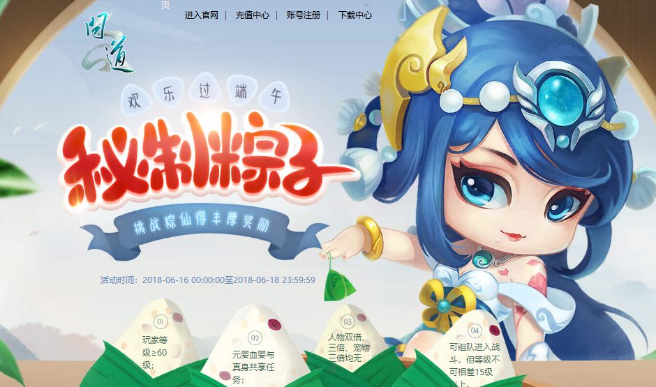 1、在活动期间,玩家达到60级之后增加【端午节】秘制粽子任务,玩家可至桃柳林,将有粽仙下凡巡游,挑战成功后可获得优质糯米和大粽叶;