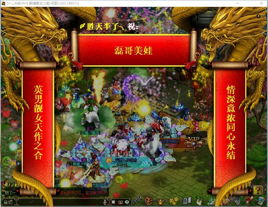 记者:虽说小编我主玩区组在2017,但是小编我也是跋山涉水,翻山越岭,来到了群星聚会,见证了你们的婚礼,更见证了你们的爱情,最后小编祝愿你们天长地久不分离,海枯石烂不相弃。 ╰美娃娃╮:谢谢大叔的祝福哦。
