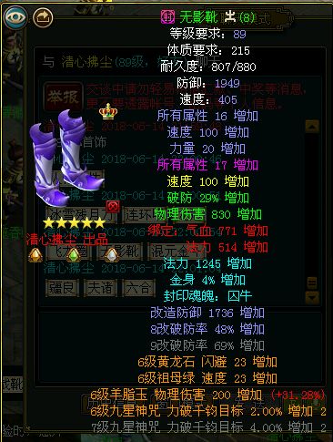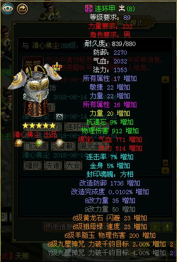 清心拂尘:明天你会看到咱们区又多一套89的改8装备。