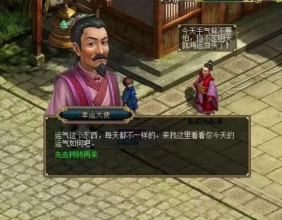 ),运气好有道具,运气爆棚就会抽到道具套餐卡一张,并且得到500成就点和一个稀有的金色称谓「幸运大使」。我的小火号有幸得到了这个称谓。现在幸运大使被取消了,成了呆立揽仙镇的摆设,那个绝版称谓还偷偷被改成了蓝色,扼腕叹息.....