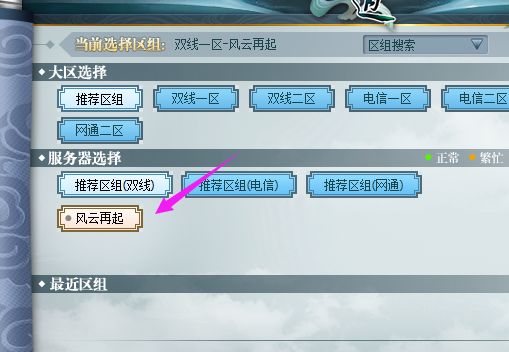 (2)安装客户端,选择专属测试服“风云再起”;