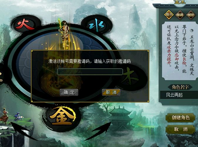 (3)登录账号密码后创建角色,输入角色名点击创建,会在客户端弹出激活码输入框,输入后即可成功激活,并创建角色;