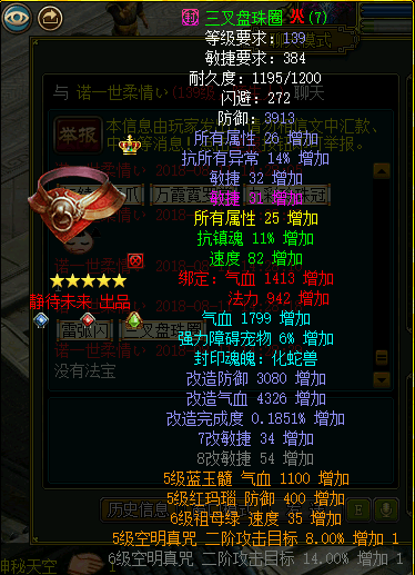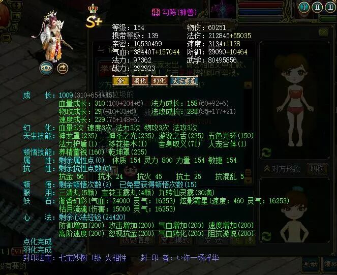 下面附上队伍属性 装备 宝宝 以及合影: