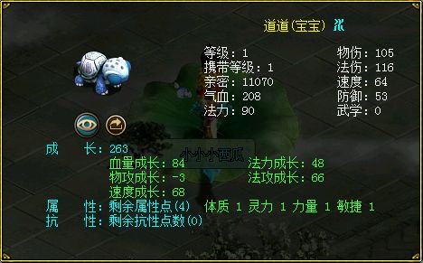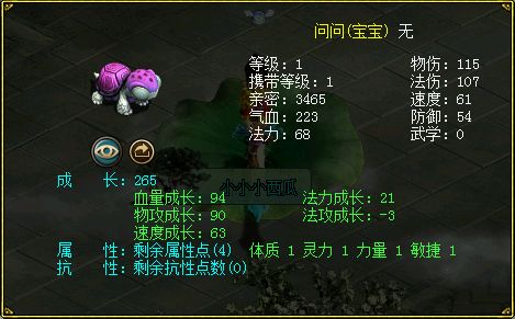 然后西瓜想着二测中有没有老版本中师门任务之水蓝芯,便开始做起了全部的师门任务,结果并没有找到。那么小编也希望官方大大看到文章后可以参考一下,道友们也许会更欢迎哦! 做完全部师门任务,西瓜已经四十多级,突然看到世界上很多买卖本次经典服的纪念宠的消息。 经典服纪念宠,二测中与一测不同,宠物名字不再是一测中的道道,由一测中可力法双修的道道演化而来。 分别是物理属性的“问问”(力)
