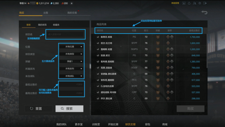 球员交易功能是游戏常用功能之一,大家可以通过球员搜索和筛选来交易自己喜爱的球星,通过不同特点的球星来增强王朝阵容深度或打磨街头技术风格。 今天就为大家来详细解读一下游戏中的球员交易系统,通过大厅球员交易按钮,可以直接进入球员交易市场,交易市场默认展示购买面板,在购买面板的左侧有非常便捷的搜索功能,搜索功能包含了三大模块:球员名、条件筛选和价格搜索。 球员名搜索功能中玩家可以使用完整球员名,或球员名字段的方式,搜索自己需要的球员,球员名支持的是精确搜索,一定要输入正确的球员中文名哦! 条件筛选包含了五大模块,位置,球员类型,突破,所属系列和来自球队。其中位置和球员类型是比较关键的属性内容,搭配篮球场球员上的五个位置,游戏目前定义了15种球员类型:全能型巨星、进攻型巨星、防守型巨星、攻防巨星、进攻组织者、突破精英、篮下得分手、背身得分手、篮板精英、中距离射手、三分射手、接球投篮射手、禁区守护者、外线封锁者、挡拆战术专家、潜力待发掘。 (球员的位置和类型,可以产生多种组合搭配) 大家可以根据场上打法和球员类型筛选自己需要的球星,主打外线投射,可以三分射手SG或SF、中距离射手SG或SF,主打内线背身,则可以选择背带有背身得分手类型的PF或C;主打防守反击,禁区守护者C、外线封锁者SF的组合都是不错的选择。这样的组合内容还有很多,大家可以根据自己的打法和操作喜好,来选择适合自己的球星。 出售价搜索中,可以只输入球星的最高出售价或最低出售价其中一项,也可以输入价格的区间,最低出售价必须小于最高出售价。 在输入完各种条件后,点击“搜索”才会在右侧的商品列表中展示搜索结果。点击商品列表的球员名、位置、能力、突破、徽章、最低出售价可对商品球员进行排序。 在购买展示面板中,球员价格会按照升序排列,并显示每个价格的球员数量,球员商品数量较多时,可以使用批量购买功能。购买单个球星时,系统会自动成交该球员的最低售价并返还差价。 在球员交易系统中的出售面板中,每名玩家最多可以同时出售30名球星,并提供售市场价和最低成交价的参考,便于玩家交易。 最终的交易结果会在我的交易界面展示,玩家可以通过这个界面领取成功购买的球员,和收取卖出成功所获得的合同费,球员交易合同费的税率目前是25%。 通过今天的介绍,相信大家已经了解了球员交易系统的细节,赶紧登录游戏,交易最适合你的球员吧! |