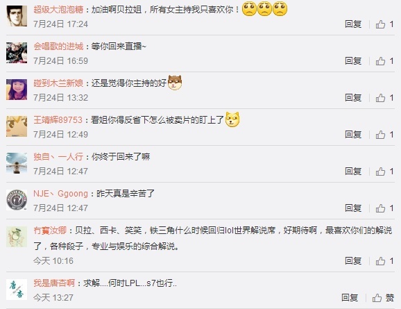 贝拉重回LOL解说席 网友:期待一家三口团聚