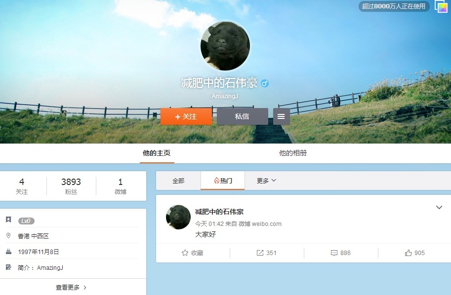 今日凌晨,一个ID为“减肥中的石伟豪”的微博账号发布了第一条微博。有细心的网友发现,这个账号就是LPL中IM战队现役上单选手AmazingJ的微博! 从个人资料上来看,这个账号的确是AJ本人无疑。过了没多久,得知AJ开通微博的粉丝们纷纷前来报道,与AJ打起了招呼: 不过随着关注的人越来越多,AJ的微博留言区突然就变成了他个人表情包的秀场,下方的评论几乎都是这样的: 毕竟北极以北AJ最美,作为“LPL吴彦祖”,相比AJ自己也猜到了会有这样的待遇吧! |