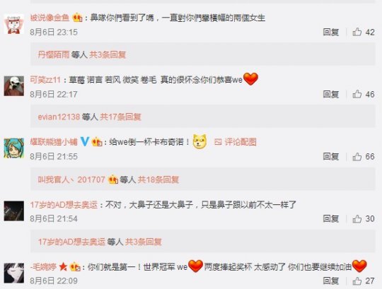 在刚刚结束不久的《英雄联盟》王者回归邀请赛上,由草莓、山泥若、若风、微笑和卷毛组成的中国大陆老WE代表队最终夺得了冠军。 在获胜后不久,若风发表了微博庆祝这次来之不易的胜利: 不少老WE的粉丝也在微博下方纷纷表示祝贺: 究竟若风是否真的像部分人想象的那般不堪呢?昨日下午,回到家后的WE老队员草莓开启了直播,而在直播中草莓向我们透露了这样一个信息:在这次的比赛中,若风为了让大家多分一点钱,自己主动放弃了奖金,让其他的几个队友分。 在税后,参赛的其余四位队员每个人大约拿到了6万左右。不过即使是这样,还是有不少人抓着若风来黑: 其实讲道理,若风这次的行为在小编看来的确没有黑点,人之所以会遭人嫌,大部分情况下是因为为了争取自己的利益而不择手段的对付其他人;但这次若风作为WE的老队长,在自己发迹后依然不忘为曾经的兄弟们着想,这一点还是值得我们肯定的。 |