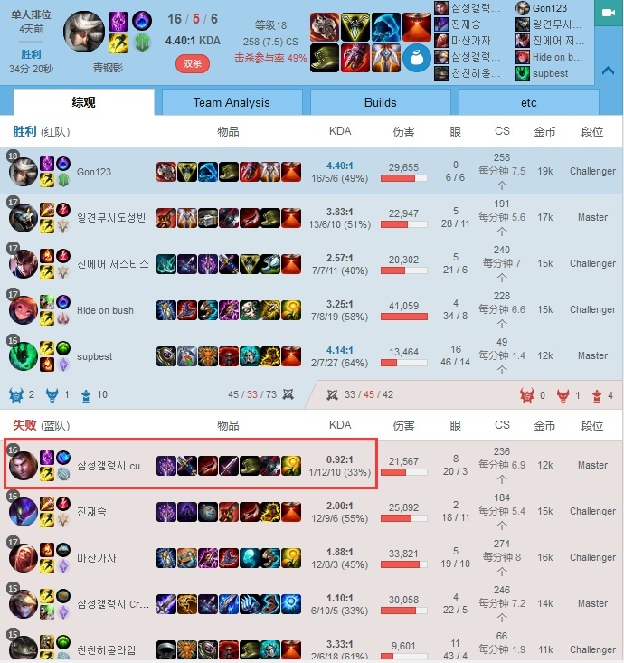 从此前的转会期信息中相信不少小伙伴已经知道,原EDG替补上单选手赵奥迪(Audi)已经正式转会LPL新军BLG战队。在这一消息刚刚公布时,大部分玩家都非常不理解。因为奥迪在EDG时随队出战洲际赛时的糟糕表现,让他被网友们调侃为“继厂长之后,EDG永不团灭的新代言人”。不过令人惊讶的是,离开EDG后的奥迪似乎突然觉醒,在韩服已经成为了绝对的大腿! 从奥迪韩服账号最近的战绩可见,目前他已经冲到韩服王者52名。 近期他在Rank中基本上每场都能打出Carry的表现,韩服王者局中掌控雷电已经不在话下,尤其是他的成名英雄卡蜜尔,在近7日里共出战33场,却打出了惊人的79%胜率! 而真正让人吃惊的是,奥迪还曾经把今年世界冠军三星的上单CuVee打爆过!在4天前的一场比赛里,CuVee的杰斯遇上了奥迪的卡蜜尔,最终被打成了1-12-10的瓜皮战绩,可以说是被“教做人”了。最终凭借着奥迪、打野狮子狗和中路Faker的Carry表现,红队拿下了比赛的胜利。 在一年前奥迪加入EDG时,网上便有“奥迪因为操作华丽被阿布看中招入EDG”的说法,但由于在洲际赛上糟糕的表现,他的实力也饱受玩家们的质疑。在洲际赛后至今半年的时间里,奥迪通过半年时间的“闭关”后再次回归我们的视线,并且新赛季他将ID改为“Freecss”跟随BLG征战LPL,让我们期待他在S8的赛场上展现这半年的训练成果吧! |