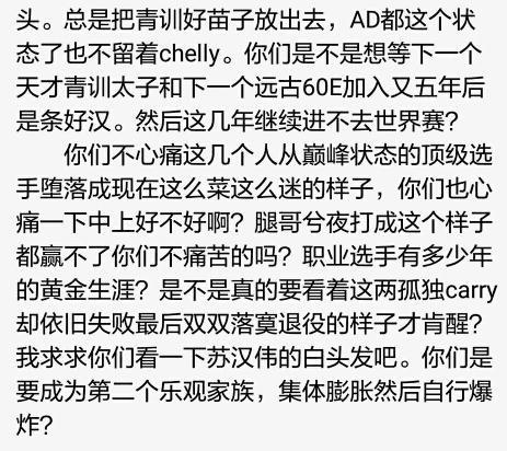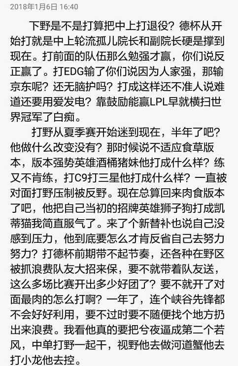 德玛西亚杯结束后,最大的冷门应该就是WE被JDG以2-0的战绩淘汰了。原本大家以为可能是JDG的新成员实力被小看,但之后IG又2-0打人机一样,两局都不到30分钟淘汰JDG后,WE的问题才被大家重视起来,不少60E开始帮助战队找出问题。 有粉丝表示,自从德杯开始WE的下路就因为谈了恋爱,一直状态不好,而打野Condi更是从S7夏季赛一直迷茫到了现在,而管理层更是傻B,赛前还允许选手们打魔兽,在和JDG的比赛前一天曝出的WE部分队员玩魔兽的照片: 粉丝原文如下,其实说的还是比较中肯的,可以看得出恨铁不成钢的心情: 简单来说就是目前957和兮夜状态一直不错,但其他三个人是真的迷,赢得比赛大部分都是另外两人带着其他三人取胜的,下路两位更是沉迷于谈恋爱,辅助ben为了女友还怼粉丝;而管理层不听取粉丝的意见,这样下去,兮夜和957迟早有一天会落寞退役,WE可能会成为下一个乐观家族! 大部分其他粉丝也非常认同上面的说法,纷纷点赞,希望WE的管理层可以看到: 可以看出60E们在WE输了比赛后也是非常理智的从各个角度找出问题所在,这些事情并不是因为德杯才存在的,而是早就有的,还好这次是德杯的比赛,不是春季赛,希望WE的管理层们可以好好看下粉丝们的建议,毕竟想要维持一直强队,光靠吃老本还是不行的。 对于这次60E怒喷WE管理层的话语,你们有什么想说的吗? |