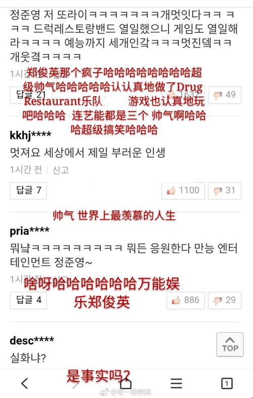 相信大家都知道,有不少明星在私底下非常喜欢玩游戏,比如沉迷Dota2频繁出没网吧被网友拍到多次的林俊杰;还有沉迷LOL并组建了JTeam的周杰伦;以及沉迷吃鸡,与王校长日常开黑的陈赫林更新等等。不过以上这些明星都是在没有影响工作和生活的情况下玩游戏,和下面要说到的这位比起来就算是“小巫见大巫”了! 近日,韩国摇滚歌手郑俊英宣布加入TeamKONGDOO旗下《绝地求生》战队,正式成为一名职业选手! 根据郑俊英的经纪公司表示,目前他已经正式成为了职业战队的一员与其他队友一同接受训练。对于这一消息,不少郑俊英的粉丝在微博下方表示无法接受... 不仅是中国粉丝,就连韩国网友也懵逼了。不过他们也纷纷对偶像送上了祝福,认为他能把自己的爱好变成职业是一件非常幸福的事。 纵观全球范围,郑俊英是从歌手转型成为职业选手的第一人,不知日后是否会有其他的歌手转行成为职业选手?对于这一波炫酷的跨界转行操作,各位小伙伴怎么看? |