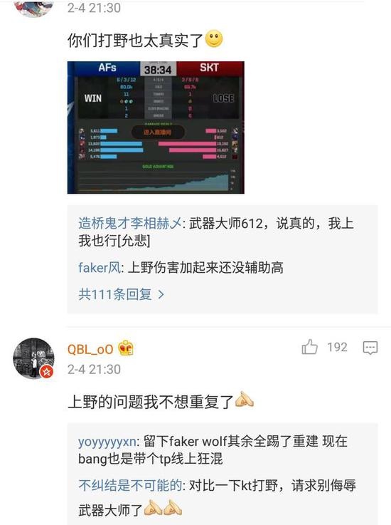 在2月4日LCK春季赛比赛中,已经4连败的SKT0-2不敌AFs惨遭零封,苦吞五连败,至此SKT的总积分依旧是LCK战队倒数第一,只拿到1分,Afs目前积分排名为第三名,第一第二分别为KZ和KSV。 今天比赛的第一局,SKT的阵容选择伤害稍有不足,反观AFs的飞机,船长和EZ在中后期都伤害不俗,这也导致SKT中期打团一直占不到便宜,虽然人头领先,但经济一直落后。 在41分钟下路的这波团战,WOLF大招进场之后,被敌方包夹,随后Faker加里奥大招保护并只身牵制后排输出,随后被击杀,这波Afs打出0换4结束了第一局比赛。 第二局:SKT选出输出相对足够的阵容,blank使用了武器大师来打野,但在6分钟时,AFs中下推线之后和打野一起四人包夹武器拿到一血,之后武器的发育就不太顺利。Afs下路霞发育良好,一旦辅助控到武器就直接被霞秒掉。 随着25分钟AFs在大龙附近抓到武器之后,直接拿下了大龙,SKT经济被拉开到5000,之后面对霞和佐伊的高伤害,SKT守塔都成问题,三路告破之后也宣告着SKT输掉比赛。 本场第二局比赛中Blank的武器伤害只有可怜的612,网友吐槽:4396?612=7.18,暗示7酱18年登基!相比对面的辅助,SKT上野总伤害都达不到,这也遭到网友的吐槽。 目前SKT状态非常低迷,上野存在一些问题,打野Blank的不稳定也成为SKT的一个弱点,希望他们能尽快调整过来,毕竟在很多玩家眼里他们是一支强队,而不是动不动就被拉开经济。 |