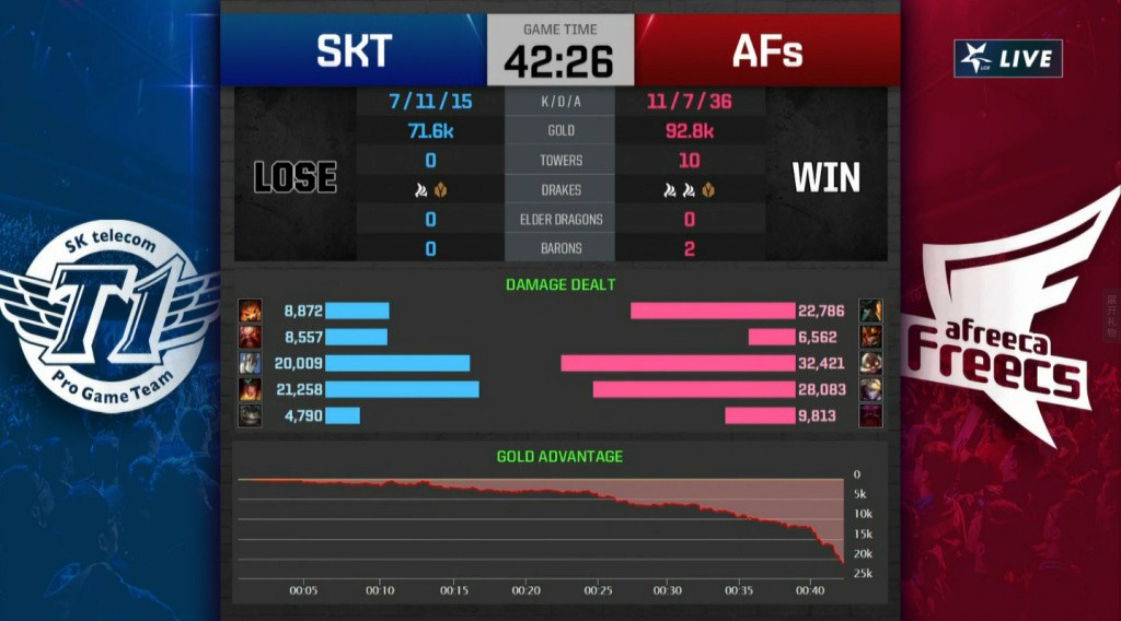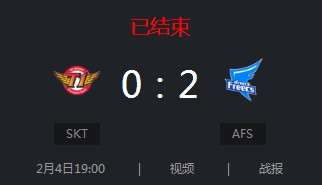 在《英雄联盟》韩国LCK职业联赛中,昔日王者SKT状态持续低迷,遭遇五连败,目前积分排名倒数第二。 在2月4日的比赛中,SKT战队0:2不敌AFS战队,这场比赛也为SKT带来了五连败的惨淡战绩,截至目前为止,SKT仅在第一场比赛对阵ROX时以2:1取得了胜利,有网友表示“现在的SKT离升降赛更接近了”。 (LCK已发表声明,Blank武器612点伤害有错误,实际输出为1111) SKT下一场比赛的对手是目前排名第6位的BBQ战队,不知道SKT这次能否找回状态,终结当前的连败战绩。 |