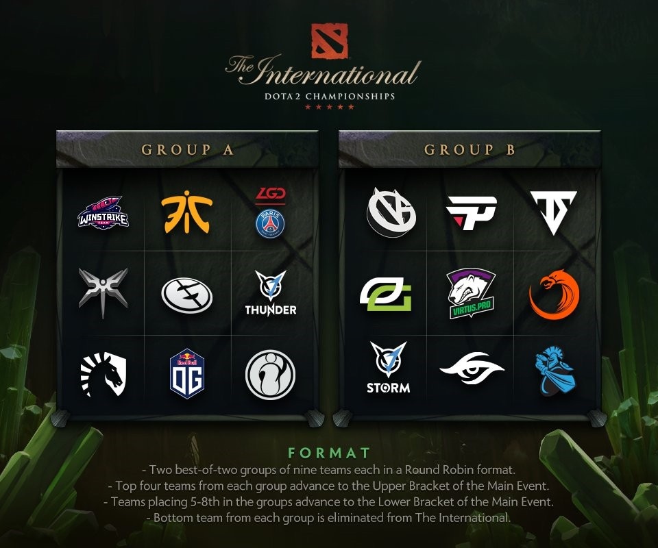 V社今日公布了《Dota2》TI8的分组情况,两组分别有三支中国队,同时TI8小组赛(8月15日到18日)这4天的对阵日程表也予以公布。 A组:Winstrike、Fnatic、LGD(中国队)、Mineski、EG、VGJT(中国队)、Liquid、OG、IG(中国队) B组:VG(中国队)、paiN Gaming、TS(中国队)、OP、VP、TNC、VSJ.S、Secret、NB(中国队) 比赛将分为小组赛和淘汰赛两个阶段。 小组赛:2018年8月15日 - 8月18日 与去年相同,两个分组各九支队伍,每场两局。每组前四晋级至胜者组,第五至八名晋级至败者组,每组垫底的队伍将被直接淘汰。 主赛事:2018年8月20日 - 8月25日 与往年一样,十六支队伍将在三局两胜制的双败淘汰赛中一决高下。其中败者组第一轮为一局一胜制,总决赛为五局三胜制。 《Dota2》TI8将从北京时间8月16日凌晨0点整开始小组赛A组第一轮比赛,一轮有4场比赛同时开始,小组赛都为BO2,之后每2个半小时开始另一组的一轮4场比赛,最后一轮A组第三轮比赛预计在北京时间8月16日早上10点开始。 |