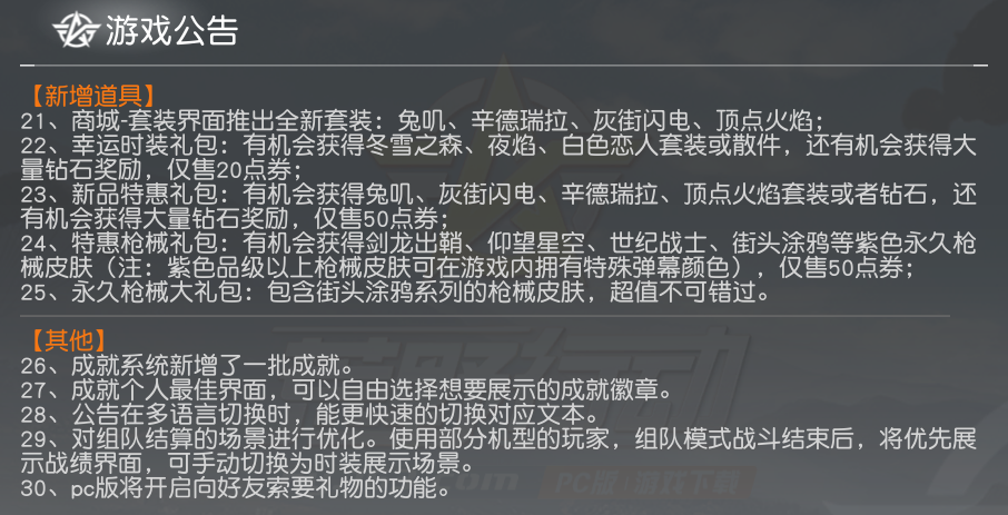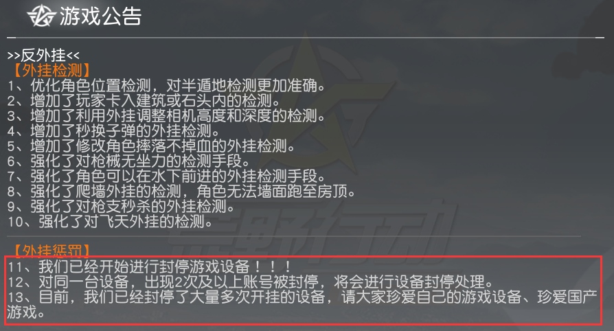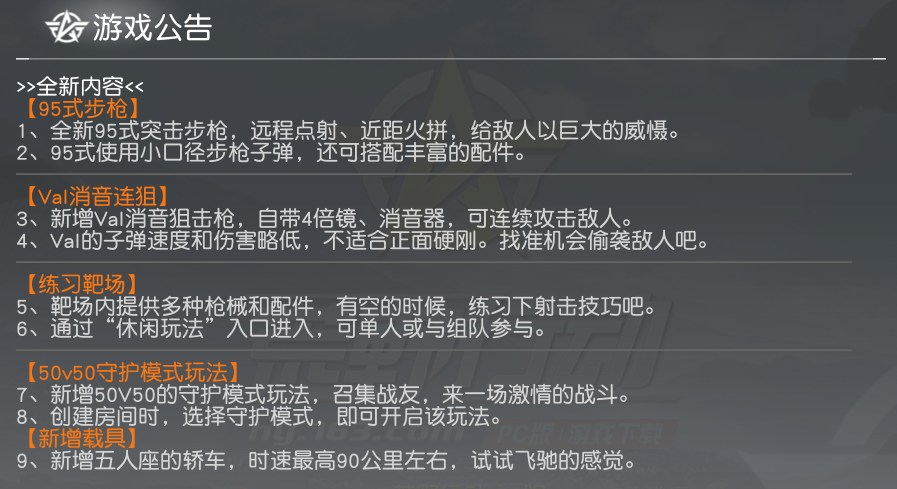 有多少玩家曾幻想过吃鸡游戏出一个50V50的游戏模式,即使落地成盒也有50%的吃鸡率?荒野行动在1月26日的更新中就做出了这样一次大胆的尝试,让我们一起来看看更新内容吧! 《荒野行动》的外挂问题一直被玩家吐槽,因为是免费游戏,使用外挂成本极低,外挂使用者根本不怕被封号。在本次更新中官方终于放出的大招,不仅增加了对多种外挂的检测手段,还会将开挂2次以上的设备封停处理。经过本次更新,相信外挂使用者将大大减少。 本次更新还带来两把新武器、两种新模式和一种新的五人载具。 新出的95式步枪拥有略大于M4A1和SACR的伤害,满配后拥有步枪中最高的射速(和M4A1持平)和最低的后坐力,相信会成为“满配党”们的新宠。这把枪的具体表现如何,就需要各位玩家在游戏中自行体验了。 而Val作为新出的连狙,伤害比步枪还低。但这把枪自带四倍镜和消声器的设定,可以让玩家刚开局就能压制远处的敌人,可以说是狙击手落地时最理想的武器选择。 练习靶场通过“休闲玩法”入口进入,单人或组队均可。玩家们可以在靶场内熟悉各种枪械的属性,练习自己的枪法。 50V50守护模式则需要创建房间才可以开启,房主可以自主选择游戏中能刷新的载具、武器等,也因此出现了“拳击赛”、“高压锅战”、“碰碰车”等多种有趣的玩法。 本次更新还进行了的多项内容的优化,小编认为最实用的就是好友观战功能了,再也不用一边发呆一边已经开局的好友了。 枪法不够装扮凑,本次更新退出了多个全新套装,将吃鸡游戏玩成“荒野暖暖”也未尝不可。 只不过穿上这些美美的衣服,会不会更容易被发现呢? 不得不说,剑龙出鞘是小编见过的《荒野行动》中最炫酷的的皮肤了,表面的龙还会有流动的光效,你心动了吗? 大量的BUG也在本次更新中被修复,隔着墙壁上下车、4级头、爬着跑等神级操作可能再也见不到了。你会怀念当年苦练的卡门上屋顶操作吗? 好了,今天的荒野资讯就到这里了,最后祝各位小伙伴大吉大利,天天吃鸡! 了解更多相关信息,请前往http://sy.yzz.cn/hyxd/ |