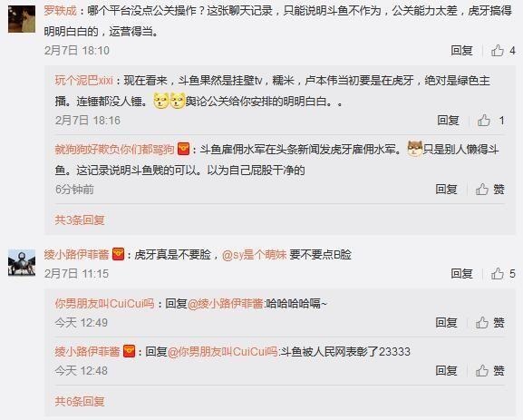 在这条微博的下方,网友们对此也抱有两种不同的看法。有部分网友认为,这有可能是斗鱼为了打击敌台自导自演的戏码: