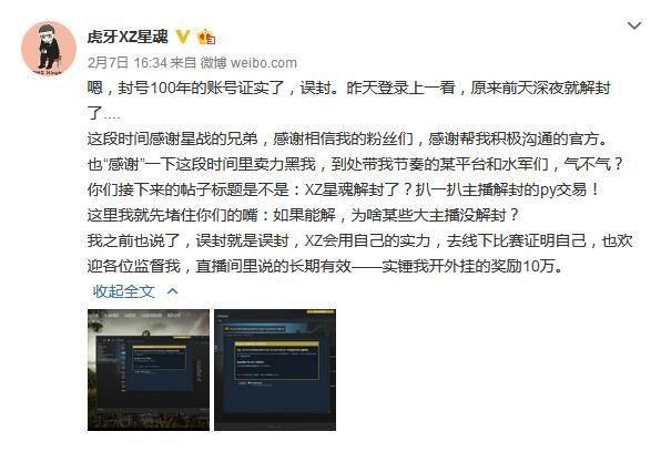 但奇怪的是,这两位选手的账号都是在被封100年、官方不接受任何申诉请求的情况下突然解封,在账号解封后,sy甚至将自己的直播间改为“百年封号已解,看我秀就好了”的名字。从客观角度来看,这样极其少数的被封100年账号居然能够解封,这样的情况的确像是蓝洞在打自己的脸。