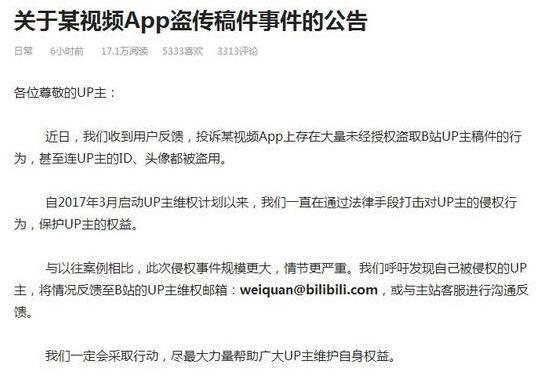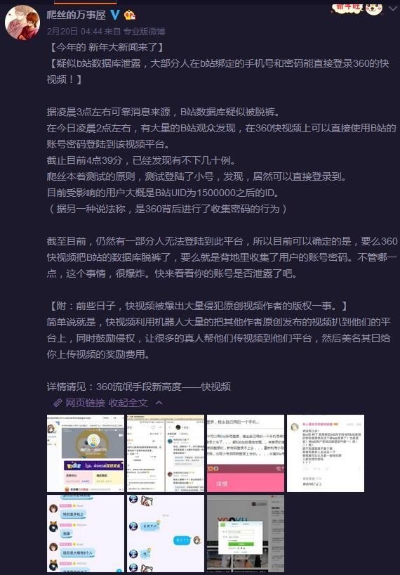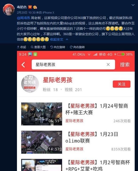 近日,360旗下一款名为“快视频”的APP被不少网友所关注。因为在近段时间里该APP频繁爆出盗取B站等视频网站的视频,该事件也在各大贴吧和社交媒体中引发了大量讨论。 在事件被爆出后不久,一位名为“爬丝的万事屋”的微博博主爆料表示,360快视频疑似盗取了B站的数据库,因为有B站的UP主发现自己在B站绑定的手机号和密码竟然能够直接登录360快视频。 事发后B站方面反应十分迅速,立即发布了一篇名为“关于某视频APP盗传稿件事件的公告”,呼吁发现自己被侵权的UP主能够向B站官方提供证据,以便帮助旗下UP主维权。 而就在2月20日中午10时30分,“毒奶老仙”黄旭东也在微博上表示他收到了不少私信投诉快视频盗用视频,并@周鸿祎表达了自己的不满。 当天下午,360方面对侵权B站事件做出了声明,称此事“系严重的造谣行为”,已报警并将追究法律责任。在看到这一消息后,愤怒的老仙连发两条微博向360快视频以及周鸿祎开炮,并送上了自己闻名于世的“毒奶”: 在老仙的这几条微博下方,网友们的大部分评论都在吐槽360,更有甚者表示:“360在你的电脑里面,除了杀毒什么都干!” 不得不说,新年伊始就出现了这么一出大戏,刚刚开工的吃瓜群众们肯定也都吃得不亦乐乎。不知对于这次的侵权事件,各位小伙伴认为事态会如何发展?欢迎说出你的看法! |
