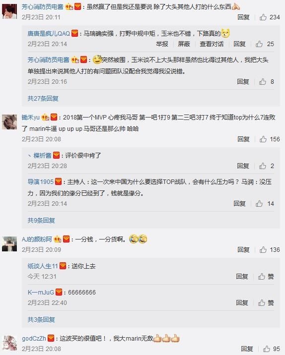 昨日下午,《英雄联盟》春季赛后半段比赛重新开赛,首场对阵的是在前半段分别处于东西部积分垫底的Top和VG战队,因此这场比赛也被网友们戏称为“峡谷之渊”的对决。 出乎我们意料的是,想象中的“菜鸡互啄”并没有出现,双方你来我往的打满了三场,并且每一局双方打的都难分难解。最终,得到Marin加盟的Top战队成功以2:1击败VG。 值得一提的是,Marin在加入Top后的首次出战中就斩获了两场MVP,在三场比赛中分别使用了一次凯南和2次纳尔带,并且都打出了非常Carry的表现。 在赛后,Top战队官博下方也充满了观众们对Marin的赞美: 不得不说,Marin在Top的首战成功的给了那些说他“来LPL养老捞钱”的人一记响亮的耳光。退一万步说,就算他是为了养老捞钱,如今他的实力也对得起他的身价。希望在马大头加入后Top能够“咸鱼翻身”,在往后的比赛打出更好的成绩! |