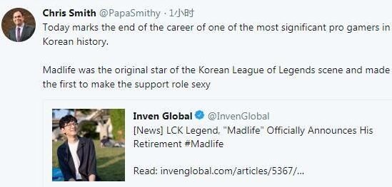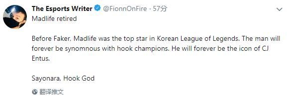 今日上午,《英雄联盟》LCK英文台解说Papasmithy在个人推特上宣布,被誉为“辅助之神”的韩国LOL选手Madlife正式宣布退役。 推特原文大意: 今天发生的事情,标志着韩国历史上最重要的职业选手之一时代的终结。Madlife是韩国LOL圈内独一无二的超级巨星,是有史以来第一个改变辅助英雄地位的人。 说起Madlife,或许不少新玩家对于他的印象并不深刻。但对于老玩家们而言,从2012年他在MIG战队正式出道后,他便成了不少人关注的对象。直到在效力于AF(Azuba Frost)时期,Madlife打出了无数令人瞠目结舌的精彩操作,也一次又一次的刷新了辅助在玩家眼中的地位。 而在最终卸任于CJ战队后,Madlife选择远赴北美次级联赛GCU战队。不过在连续冲击两轮NALCS晋级赛后,在去年的11月他离开了队伍并且全身心的投入了直播中,同时还尝试了一些诸如解说这样的工作。 对于Madlife宣布退役的消息,ESPN撰稿人也在推特上发表了自己的看法。 推特原文大意: 在Faker横空出世之前,Madlife堪称是韩国LOL历史上最闪耀的明星选手。他永远是钩子类英雄的代言人,永远是CJ Entus的标志。再见,钩子之神。 |