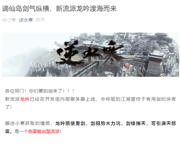 《逆水寒》的官博以骚操作多被网友笑称“皮皮寒”,上次就让一句“你家有矿啊”的梗迅速火遍网络,这次耐不住寂寞的他又出来兴风作浪,先是跟官微“互掐”,随后又大爆即将更新的游戏内容,引得一众吃瓜群众前来围观。 事情的起因,是前不久皮皮寒发的一条令人玩味的微博“牛下入虎啸”,而机智的玩家也迅速猜出了这条微博的意思:“马上出龙吟”! 对于皮皮寒的这波操作,相信了解他尿性的小伙伴一定知道,这一定又是为游戏的新内容造势。小编也成功的被皮皮寒吊起了胃口,对新职业产生了浓厚的兴趣。为了能在这个会呼吸的江湖中继续自由驰骋,下面就跟随小编的脚步来了解一下新职业的有关消息吧! 在职业的定位上,官微和官博爆料出了完全不同的两个消息。 官微逆小寒称,龙吟擅长重剑,是一个伤害输出型流派。 而官博皮皮寒则说,龙吟单手持剑,是一个辅助治疗型流派。 奶妈职业拿剑看起来是无稽之谈,但在网易游戏中其实早有先例,最早《梦幻西游》中的化生寺就是这样的存在。所以,此次龙吟的职业定位是辅助奶妈也不无可能。小编甚至脑补出了一个拿剑的大汉给队友加血时的情景,甚至觉得还应该为龙吟出一套护士装的时装,那样一定巨骚气! 以目前的资料来看,可以肯定的是龙吟师门驻地在谪仙岛,装备和碎梦一样同是皮甲,使用的武器和戚少商同为剑。 在技能的释放上,有网友觉得龙吟和碎梦差不多,都是先集气再爆发。龙吟靠消耗“剑意”释放技能,技能命中目标将会获得“剑心”,玩家可以使用“剑心”进入“爆气”状态,在爆气状态下,龙吟可以独自驾驭漫天剑阵进行攻击。 而从官博、官微的不同爆料中,我们也不难猜出龙吟是可奶可DPS的全新职业,既然出身于谪仙岛,那想必伤害也是不会低的。至于这两种路线是不同的成长方向,还是像网友猜测的双心法自由切换形态,还要等待继续等待皮皮寒的新爆料。 小编无法想象这样一个能打能奶的职业有多强势,只能猜测血河爸爸的地位可能会受到开测以来最大的冲击。 各位小伙伴,你认为龙吟是一个什么样的职业呢?请在评论区说出你的看法。 |