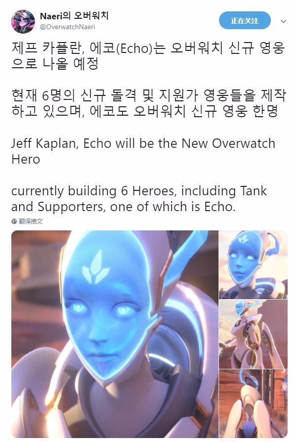 在近期举办的2018暴雪嘉年华上,暴雪也不例外地为《守望先锋》发布了一个新英雄,同时也是守望先锋的第29位英雄。伴随新英雄Ashe一起发布的当然也少不了爱什的个人故事,以及新的CG动画《重逢》。 片中的剧情就是讲述新英雄Ashe和麦克雷之间的关系,为新英雄的上线做的准备的。然而比起新英雄,玩家更关注的是片中出现的另一位人物Echo。玩家们十分关心这位身份神秘的人物在未来是否能够进行操作,什么时候才可以进行游玩。 而目前守望先锋游戏总监Jeff 也 表示,第30位英雄在他们测试中已经完全可以游戏,但并不是Echo,另外还有就是6位未公布英雄正在开发中,其中包括坦克和辅助,6位英雄中其中之一就是玩家比较关心的Echo,因此Echo肯定会在未来作为玩家可操控的角色。 在以前的公布的英雄阵型图中我们能够清楚地找出Echo,估计未来的6位英雄也是图中出现的人物。但是据目前守望先锋一年三英雄的发布频率,估计要2年后才能把6位开发中的英雄全部公布完,加上之前设计表达守望先锋要出50位英雄,这岂不是要玩家玩到2030年? 而根据Echo的外形以及名字来看,估计是一位辅助型角色,技能大概会跟操作无人机有关,为什么会这么猜想,就要问问上一位在FPS中叫Echo的仁兄! |