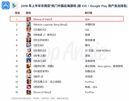 App Annine发布上半年东南亚成绩单,AoV游戏续写中国手游传奇