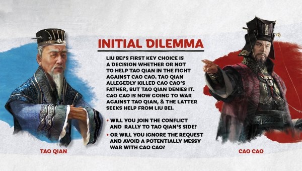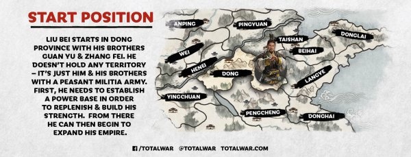 《三国:全面战争》公布了刘备的人物设定详情,除了为国外玩家们科普了一下刘备的历史背景之外,还为我们带来了他在游戏中的一些玩法介绍,详情如下。 刘备:人民的领袖 刘备谦逊、仁德,总能鼓舞人心,与追随他的人建立起了不可动摇的羁绊; 管理势力内部的团结和凝聚力是发展壮大的关键; 他的汉室血统能够让他在占领汉帝国地区时不会发生冲突; 作为一个代表人民的人,他的民兵单位不需要任何维持费用; 关系系统: 刘备在游戏的战役模式中,初期的形式并不好,而他面对的则是游戏中最强大的敌人之一,因此与关羽、张飞的兄弟情谊在这里至关重要,他们二人是刘备团结技能的重心,而部下们只有在开心的时候才能够加强团结,因此需要玩家们保证将领们高兴。 初期形势: 所有的诸侯在战役一开始都会面临一个最初的选择,而从官方给出的地图中我们可以看到,战役一开始刘备位于徐州地区,处于曹操的势力范围之内,因此他面临的第一个选择,就是要不要帮助陶谦对抗曹操,玩家们可以选择应邀协助陶谦,也可以选择无视请求,避免与曹操交战,保全自身。 官方在介绍的最后写到,刘备适合那些自信、聪明以及谦逊的统治者,能够关爱人民,了解人民的需求,想要化解战乱,并会胜利时机显现的时候将其牢牢抓住。 |