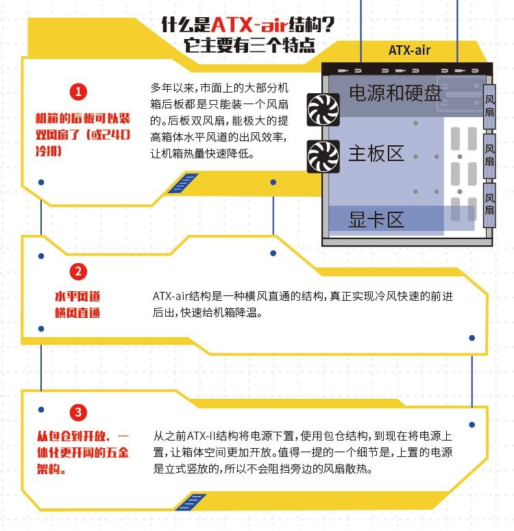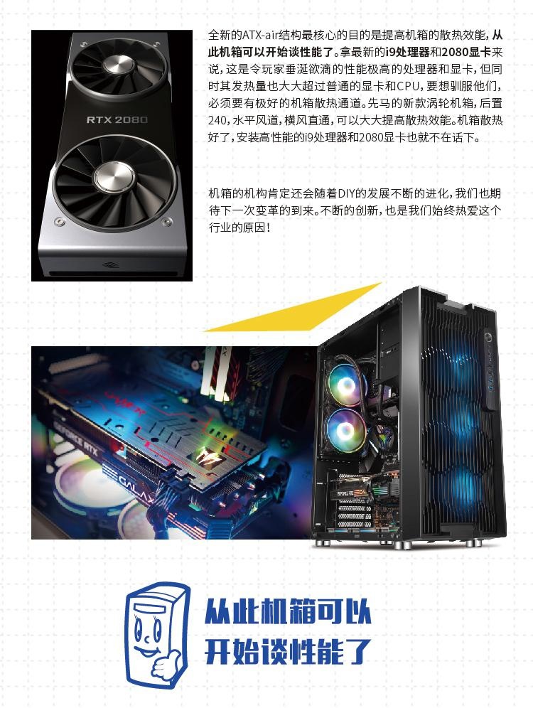 在DIY硬件领域中,要有着独当一面征服力的产品,往往总有自家专属的武器独步于市场。机箱市场中的先马,一直都是架构改良的先行者,他们不甘于束缚于传统的ATX机箱架构,面向不同的应用诉求先后领航缔造了ATX-II和ATX-III架构。而如今,他们再度凭借涡轮飓风系列机箱所拥有的全新ATX-air架构,实现从结构升级到性能飙升的完美过渡。 传统的ATX结构,仍然存在不少缺憾,直到2015年先马率先完成了从ATX到ATX-II架构的革新,它大胆地摒弃了传统的硬盘笼和光驱笼,同时实现了电源下置,并利用独立的包仓实现了电源和硬盘的隔离,实现机箱内部空间得以充分利用的同时,也很好地避免了不同硬件间产生的散热风道冲突,更加契合了DIY玩家个性化的装机需求。 随后诞生的ATX-III架构则是面向水冷散热改造的优化解决方案,它的架构极简,也取消了独立的电源仓位,硬盘则是采用了灵活挂载在机架上的方式,箱体内每一类硬件都拥有广阔的发挥空间,也让它们的每一员也都能成为平台的主角。 而先马涡轮飓风机箱,以重新定义散热新标准作为产品的理念,极具突破性的ATX-Air架构,三大革新让玩家惊喜不已。其中背板240双风扇的配备,与水平风道横风直通的散热模式理想衔接,前者全面提升了机箱内的出风效率,后者比起传统的垂直风道更有利于冷风的前进后出,散热效能自然获得大幅度的提升。当然,还有包仓结构的彻底舍弃,一体化开阔的五金结构,以及电源上置竖放的改良细节,让机箱中间彻底打通,冷热交换再无任何阻隔,如此彻底而出彩的架构改良,平台的扩展、散热,改造起来无疑更加好玩了。 从前,机箱只充当着将平台硬件的搭建桥梁,如今有了先马涡轮飓风这样的进化代表作,终于可以谈性能了。玩家不但可以尝新背板双风扇,还能感受高塔8槽架构搭建四卡交火奢华显卡系统所带来的极致快感,反正装载再顶级的硬件都不怕,ATX-Air架构就是玩家们垂涎的散热保障。 不断探索,用心感受用家的真正诉求,先马就是秉承着这样的精神,为玩家、用户一次又一次地带来惊艳十足的产品。如此涡轮飓风机箱,再度为先马摘下机箱结构最优解产品的称号。我们相信,这不是先马出品追逐的终点,但可以肯定,这将是2018年末让人惊喜的明星硬件之一。 |