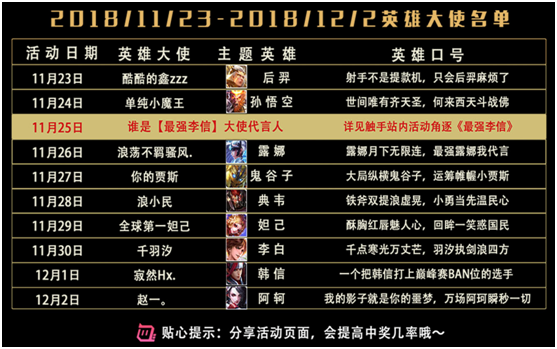 如果要说近半个月来最火的事情,莫过于为庆祝IG夺冠,王思聪在微博抽100万大奖了!对于万达公子来说,这自然不算大钱,可是却引起了微博的抽奖狂欢,不到1天,王校长的这条微博转发、评论、点赞都破千万了,明明挺好的事,却在开奖后被怀疑有黑幕,就连触手直播平台最近刚抽出的王者荣耀锦鲤也中招了!究竟是怎么回事呢? 原来在王思聪开奖后,大家发现113个中奖名单中竟然112个都是女生,这引起了男性玩家的严重不满!细心的小编发现,就连最近触手直播平台送的王者荣耀最肥锦鲤也开出了女生,难道这其中真的有猫腻? 其实无论是王校长还是触手都没机会、也没必要去干预,大家也纷纷把矛头指向微博,难道非得特定人群才能中奖?而最近许多网友为了测自己的“RP”,开始关注另一波抽奖:触手直播抽的王者荣耀锦鲤虽然开出来了,但据说除了锦鲤,站内的抽奖活动仍在继续,还有上千个英雄皮肤没开奖呢! 小编先说一说前情提要。触手直播这次抽出的王者荣耀锦鲤是一次性帮锦鲤清空王者荣耀购物车,除了不能购买的皮肤,全皮肤全英雄都会帮锦鲤买齐,甚至还会抽满6颗荣耀水晶,帮锦鲤承包整个荣耀水晶商店,还有剑仙、蓝烟等人气主播和战队加码的礼物,很有牌面。 这么盛大的剁手场面一定非常震撼,所以在11月18日晚上8点到10点,将由锦鲤选中的RNGM战队选手凉晨和虔诚帮她直播剁手、抽水晶哟,各位想猎奇的玩家千万别错过了!到时候还会给直播间的观众抽100套仲夏夜之梦的皮肤和一个价值1700的索尼头戴式无线蓝牙耳机,错过真的亏大了。而除了锦鲤直播当日的一百套,整个11月每天都有100套皮肤在直播中送出,也太壕了! 从11月3日开始,触手直播每天都会为大家选出一个英雄大使,只需要在当天18:00-22:00进入到英雄大使直播间,就可以参与抽取100套英雄皮肤啦~ 活动预计月底结束,虽然已经过去一半了,但仍然有上千套皮肤没开奖,机会多多,每天都在触手等你来拿!当然,除了抽皮肤,只要进入英雄大使直播间,大使会为大家呈上当日英雄专场,不仅福利没错过,还能学习很多英雄的使用技巧,简直美滋滋。 为了帮大家更好的进入喜爱英雄的专场,小编给大家整理了一份直播时间表!爱看直播、想要皮肤、围观剁手现场,无论你是哪一种,都可以一试哦! |