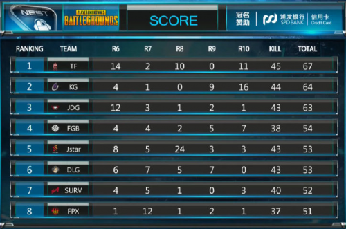 NEST2018 PUBG总决赛名单出炉,黑马TF战队登顶榜首晋级