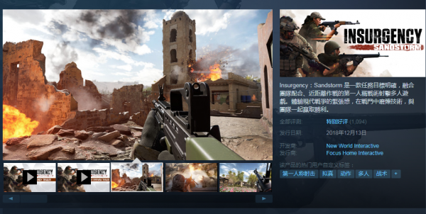 硬核FPS《叛乱:沙漠风暴》发售 优化差成游戏诟病