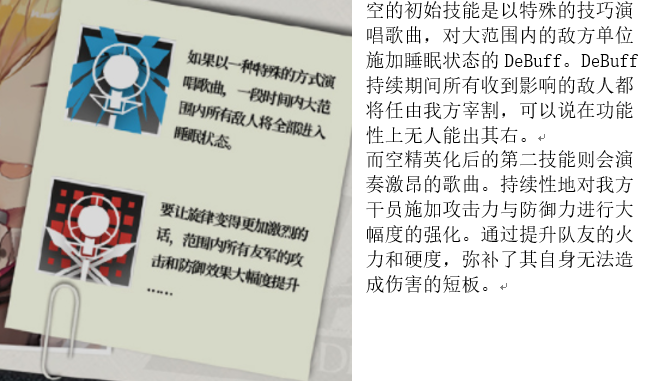 嗨大家好!我是MSR旗下的偶像空……啊……啊!抱歉,这样自我介绍,也许不太适合罗德岛这样的地方吧。唔…… ——空 作为一家物流公司,企鹅物流不养除老板以外的闲人。拿不起长枪大炮也挥不动刀剑棍棒的空靠的是自己的歌喉成为了目前[ 企鹅物流 ]已知唯一的辅助干员。 空的演艺期曾因元气的个性与鲁珀族标志性的可爱尖耳积累了相当的人气,但当德克萨斯被问起前一段时间发生的鲁珀族遇害事件时——“你是说,只杀狼的连环杀手?空的话,不用担心。”相较于冷静,德克萨斯的回复甚至有点漠不关心。不过从空精英化后的立绘来看,她到底是不是鲁珀族这一点还有待商榷。 以上就是《明日方舟》辅助干员空的介绍。 |