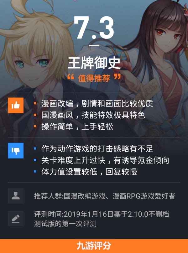 《王牌御史》九游评分7.3 斩妖除魔,请备好护肝片!
