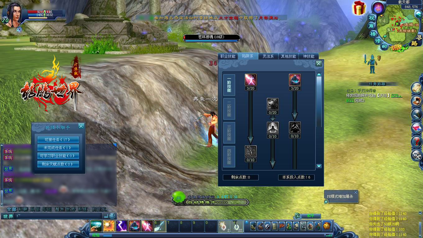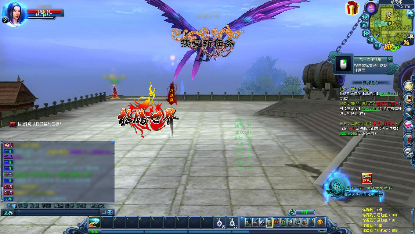 九、人物动作: 在进行操控时,首先印象最深的是角色妩媚的跑动动作。或许是因为笔者测试的是极天吧,所以其动作十分的妖娆。看了身边虎贲的角色,相对于极天来潇洒、大气了许多。 十、新手村初体验: 玩家在《龙腾世界》中登场,会发现自己置身于一个祭台之上。祭台四周隐约可见远处楼阁,天上云朵漂浮游走,宛如仙境般的载天都,你就在此出生开始《龙腾世界》上古神话之旅。在做了基本引导任务后,玩家将乘坐超炫的凤凰坐骑,离开新手村。 凤凰双翅展开能有半个屏幕大小,身后的金尾在飞起后迎风飘扬,飘逸感十足。 凤凰飞起的旅程,将路过巍峨的城堡、浓云密布的树林、危岩峭壁的巨石神像,飞流湍急的河流.....玩家在游戏一开始,就能在天上比较全面地领略到《龙腾世界》美轮美奂的上古奇观。 十一、技能系统: 从笔者目前看到的技能系统来看,《龙腾世界》采取的是技能树的规则:就是当玩家达到一定等级后,就能自动的学习、升级技能。而且角色每次升级,都能获得一个技能点。这个技能点可以加入到相应的技能体系中。例如猛毒系、法术系等。不同的体系将决定职业的成长方向。 笔者练的是 极天,目前23级,已经能够使用三味真火、寒冰术等技能,都是单体攻击技能,基本满足笔者日常的需求。 其中三味真火是这一阶段最为华丽的技能。使用后人物右臂会有一轮大范围的金光符文展开,让人印象深刻。 而虎贲在11级后可以练就“劈山式”这一技能。这一技能每次使用过后,游戏屏幕都会颤抖,极具打斗的现场感和刺激感。