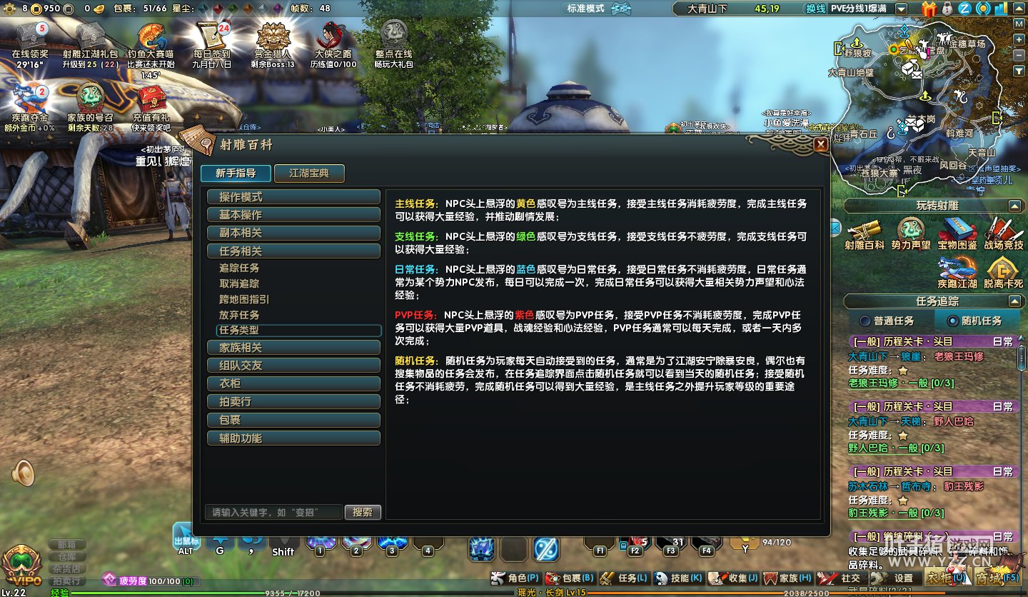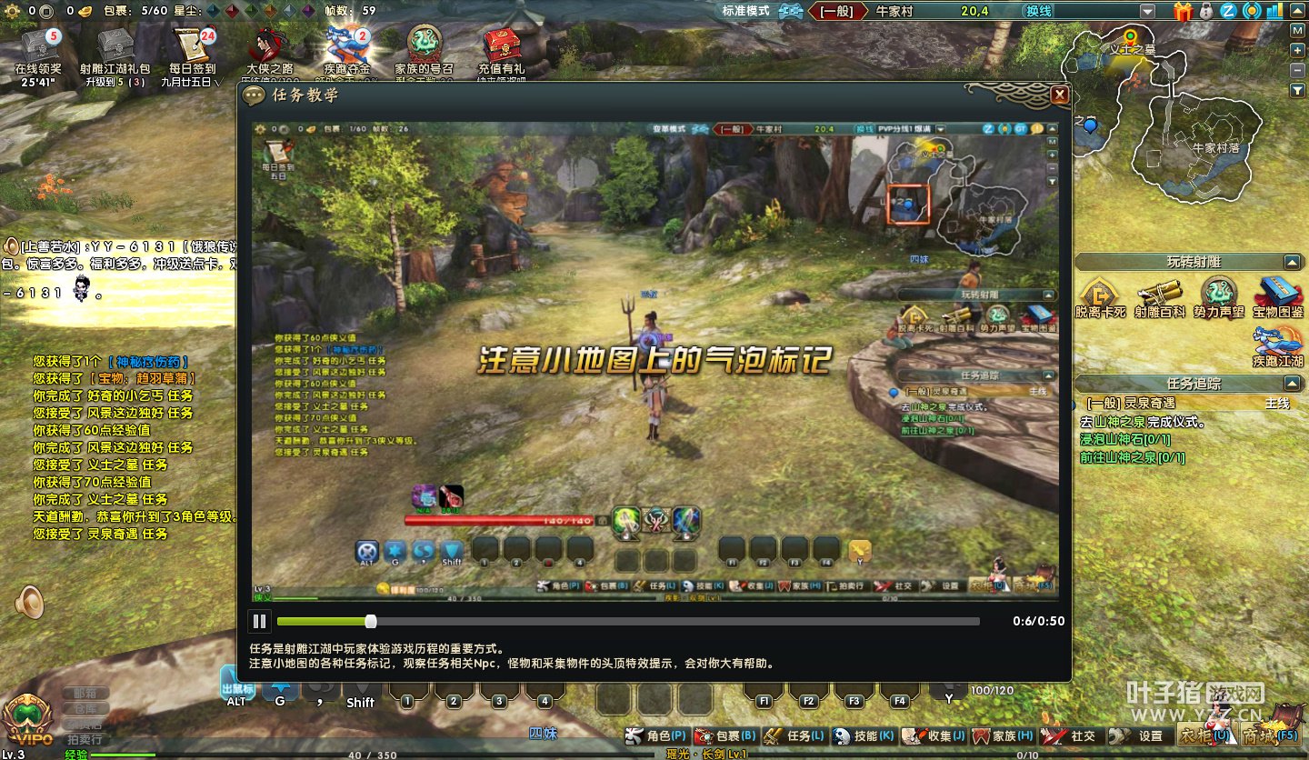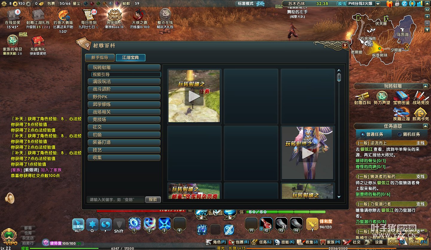 进入游戏,满屏幕金灿灿的世界喇叭瞬间秒杀了小编的氪金狗眼,如果长时间看这么闪的喇叭,很容易造成视觉疲劳。虽然喇叭很闪,但公测新增的任务教学视频却是小惊喜了一番,获得一次教学视频后会永久收藏在“射雕百科中”,以便以后再翻出来观看。内测中发现新手指引不足的诟病,终于在公测后成功去除。