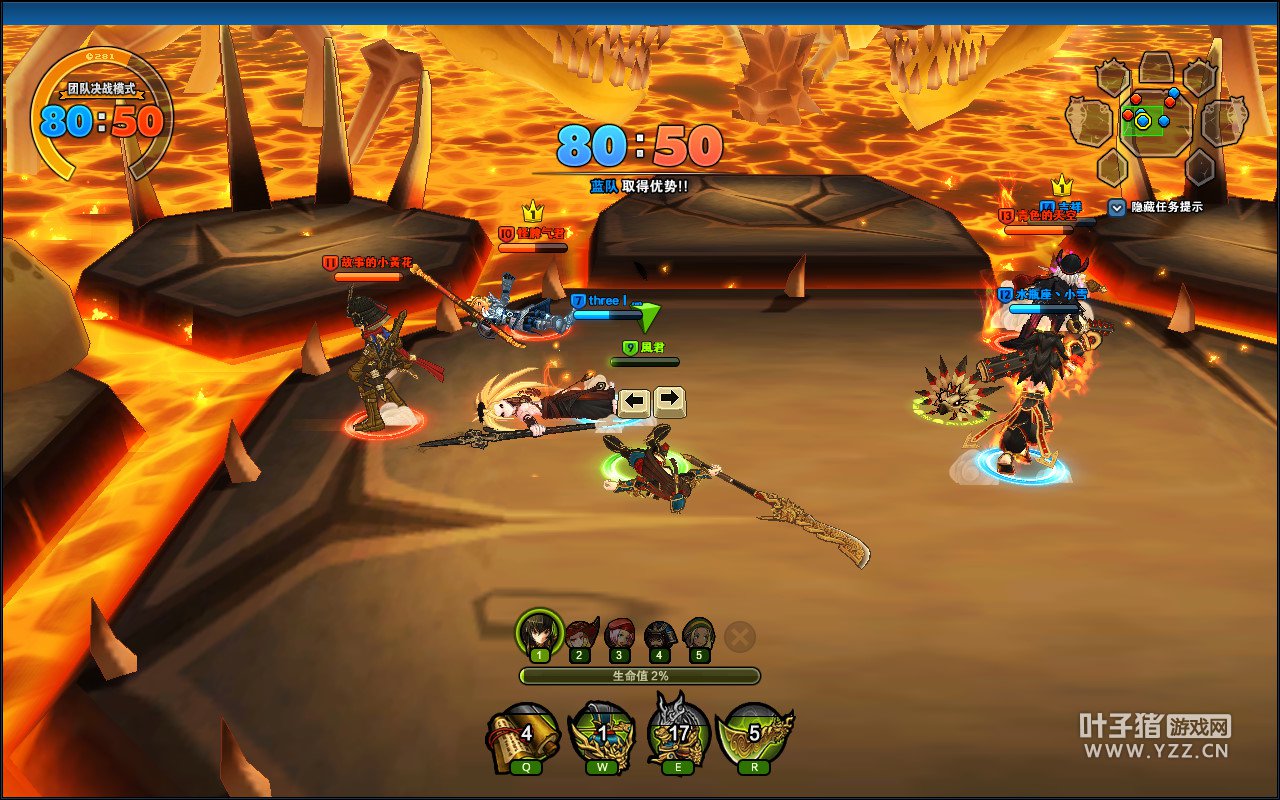 王牌对决丰富有趣的对战模式 《王牌对决》拥有8种对战模式,而其中小编觉得比较好玩的是团战PVP和俘虏模式,首先来讲解下团战PVP,在团战中,哪队首先拿到100分就算赢,在游戏中,地图是随机生成,每次都有可能在不同的地图进行决斗,因此游戏玩久了也不会觉得单一乏味,不同地图带来的视觉冲击感还是挺不错的。玩家在团战中可以死亡多次,直到团队积分达到100的时候。 在团战PVP中讲求的是英雄的配合和先手的时机,因为《王牌对决》的地图不设有空气墙,玩家很容易就会掉下去或者被烫伤电击等伤害,小心翼翼的控制是很讲求技术,还有使用“A”和跑“A”的时机也是相当讲究的,一不小心就会减少很多生命值,不少新生玩家不是给对面打死,而是自杀的。在团战中,英雄的配合显得非常重要,有一个控制英雄和一个远程,这两者在团战中发挥的作用其为之重要,各种无脑推人出场,各种AOE,IP英雄的所独有的先天优势也得到一定的平衡。