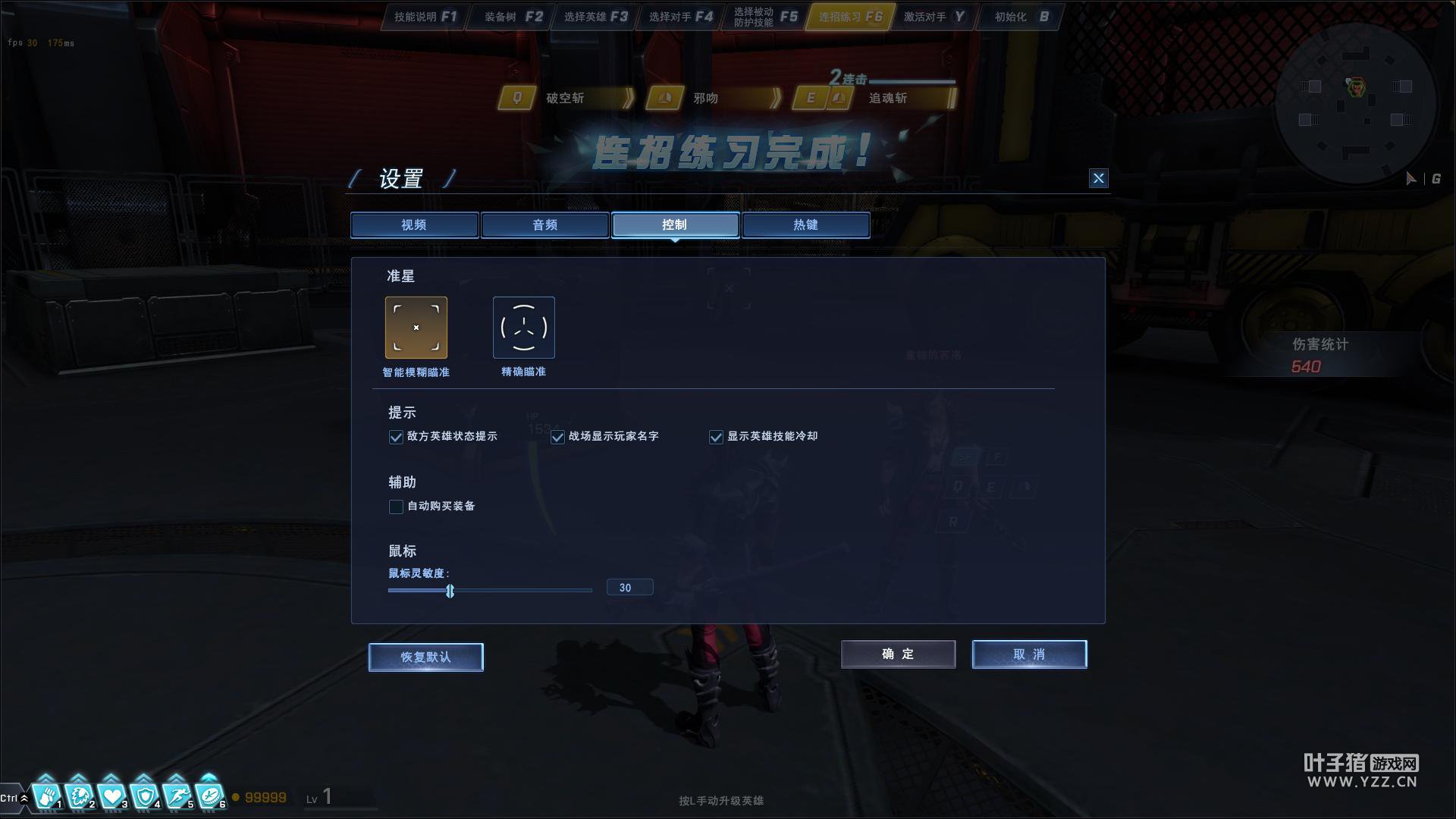 智能模糊瞄准:系统会自动选取离鼠标最近的目标,自动修正范围很大,但没办法预判,只适合新手。